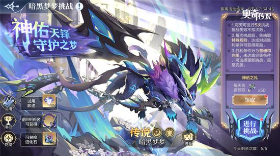 挑战暗黑梦梦、合体梦梦、哆啦梦梦可获得梦之队成员。暗黑梦梦挑战共开放5个难度,难度越高获得奖励越多,最后通过兑换获得‘暗黑梦梦进化石’,放入暗黑梦梦进化石和‘小梦’即可进化为暗黑梦梦。合体梦梦的挑战,则是挑战以不同梦梦为核心的合体梦梦,完成挑战可解锁爱心梦梦的进化。最后,哆啦梦梦挑战的形式则是以小游戏为主,奥奇们通过小游戏收集道具碎片,获得‘哆啦梦梦进化石’。