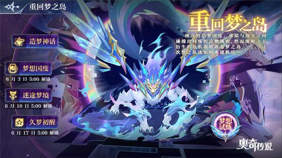 梦之队成员爱心梦梦、暗黑梦梦、炼金梦梦、哆啦梦梦、热血梦梦再次集结,回到梦开始的地方。梦之队是一个团队,他们集合在一起便会产生巨大的能量。五名梦之队成员同时上阵,且阵容中心(五号位)布有一只精灵时,还将触发全新玩法“合体技”。战斗开始后,五只梦之队精灵将根据五号位所在的精灵合体为对应的超维梦梦。奥奇们也不需要担心凑不齐五只梦梦,除了热血梦梦需要通过限定卡池召唤获得,本次版本将送出120张神唤券保底必得热血梦梦,其余4只梦梦均可以通过挑战、登录、剧情活动等方式获得,即所有的奥奇们都能获得完整的梦之队!