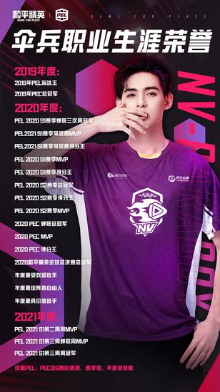 从2019年PEL淘汰王,到如今突破千人大关,一路走来,伞兵都在诠释着超越自我、突破极限的电竞精神。也正是如此,我们才能看到如此耀眼的数据,从2019 PEL突围赛A组第14场:一鸣惊人,荧幕首秀,到2019年PEC总冠军、2019年PEL淘汰王,再到2020 PEC 蝉联总冠军、2020 PEC MVP、2020 PEC 得分王、2020和平精英全球总决赛总冠军、年度最受欢迎选手、年度最佳自由人,年度最具价值选手。伞兵的职业生涯里获得了无数荣誉。