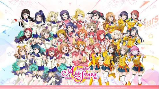 回归正题,《群星闪耀》是KLab在“LoveLive”企划9周年之际,推出的衍生手游作品,国服于前天开启公测,公测时上线包括μ‘s、Aqours和虹咲学园三期企划的27名偶像角色。玩法上主要以RPG养成与音游玩法相结合,玩家将作为男主与三代女团的小姐姐们共同成长,挑战更高难度的歌曲和更大的舞台。
