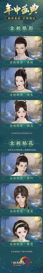 全新眼影·青枝/潮生/猫耳:6月17日7:00永久上架,售价700通宝。6月17日7:00至6月21日7:00享受全场妆容半价优惠。