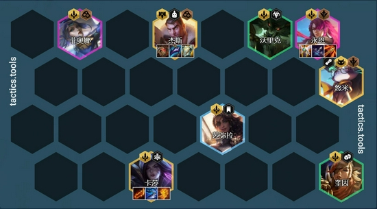 阵容组成:吉格斯、璐璐、斯维因、马尔扎哈、薇古丝、塔里克、迦娜、奥利安娜
