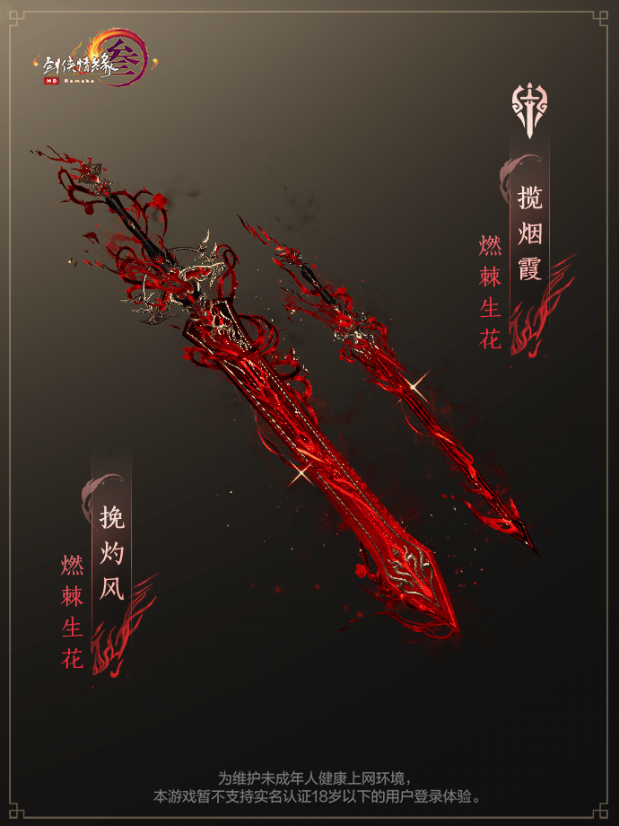 金戈争鸣,荆棘燃血。作为本次助威礼盒的重磅佳品,全新“燃棘生花”系列武器外观震撼来袭!,血荆缠柄而生,恰似燎原之火再度灼燃,红霙伴火星垂落,点燃少年侠士心中无限战意!侠士开启[凌虹金戈盒]后可从十七款门派武器中任选其一,武器以无属性装备的形式产出,仅可支持本门派武器拓印。
