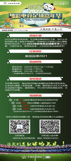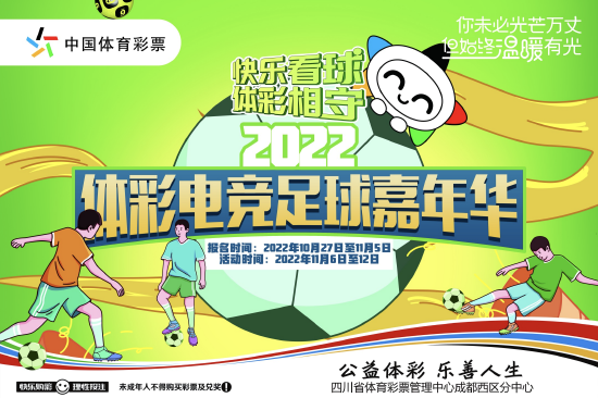 在世界杯足球盛宴即将上演之际,10月27日,由四川省体育彩票管理中心成都西区分中心主办的“快乐看球 体彩相守·2022体彩电竞足球嘉年华”活动正式开启报名通道。
