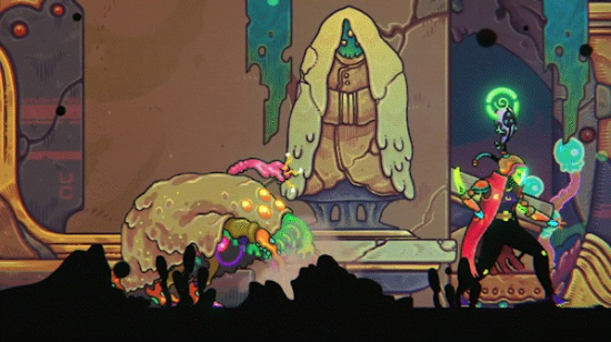 作为Ouji,玩家将要面对光怪陆离的敌人。其中一种名为Puppaluppas。玩家可以打出一套组合拳,敏捷出击,拳拳到肉。等怪物咽气以后,玩家蹲下身,掏出它的内脏,优雅地吃掉它,就可以恢复体力、获得营养,增强免疫力。
