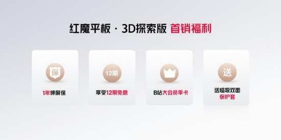 红魔平板·3D探索版9月5日16:00在红魔官网、红魔京东官方旗舰店等全渠道正式开售,12+256G售价6499元,16+512G售价7299元,多款配件同步上线,首销可享12期免息、1年碎屏保、B站大会员季卡等多重好礼等福利。
