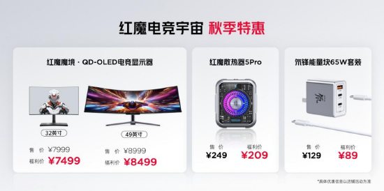 红魔电竞宇宙生态产品也将陆续开售,红魔幻刃手柄首销福利价299元;红魔散热器5Pro王者荣耀定制版仅售249元;红魔冰域键盘氘锋透明配色,首销福利价999元,暗夜骑士配色首销福利价899元,现在下单即有机会获得《黑神话:悟空》CDK;同时红魔电竞宇宙秋季特惠火热进行中,购红魔游戏笔记本16Pro部分地区至高补贴2000元,更多的优惠信息,大家可以在各个平台,官方店铺进行了解。