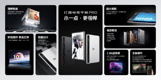 本次发布的平板新品带来多个创新技术,比如红魔电竞平板Pro在10.9英寸的尺寸里配备了性能强悍的第三代骁龙8领先版移动平台,内置红魔独家高速离心风扇,全球首创的3D内循环风道技术,还有红魔将笔记本上使用的3D热管等组成的全新的PAD魔冷散热 ICE 2.0系统,10100mAh大电池等豪华配置,满足既要极致游戏体验、又有影音、办公需求的用户。