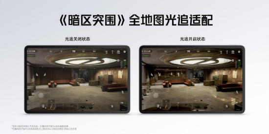 作为专业的电竞装备品牌,红魔除了过硬的性能品质之外,还会对游戏进行专项优化适配。例如支持多款主流游戏的144Hz高刷模式,与《暗区突围》合作全地图适配光线追踪技术,超分功能实现《原神》2K画质等。