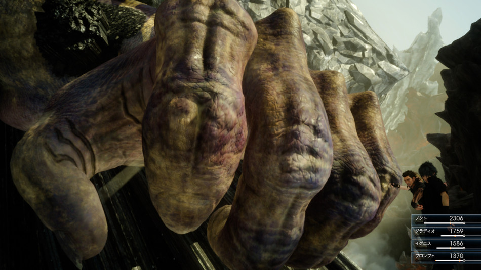 首先展示了诺克提斯一行人与强大巨人之战,巨人实际上是“FF”系列熟悉的召唤兽泰坦。本作中的召唤兽,有着多种取得条件,泰坦的情况就是要与其战斗证明自己的力量。诺克提斯尝试进行格挡反击,失败的话下场会很惨,但如果成功就会让巨人态势崩坏,发现反击的机会。本作的战斗中,会根据战况变化,实时加入一些短暂剧情来使得演出氛围提升。