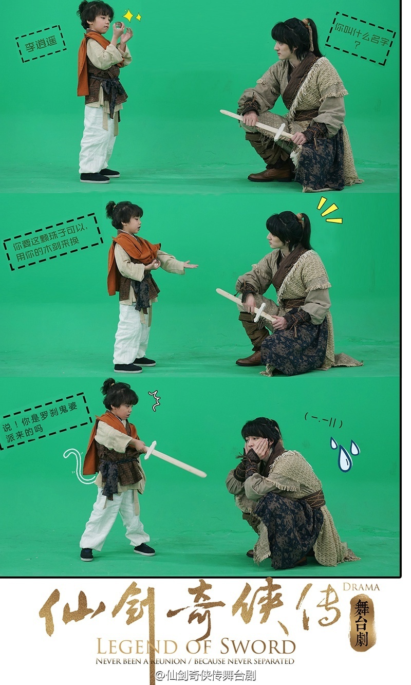 将于4月25日-4月26日正式开演的《仙剑奇侠传》舞台剧李逍遥赵灵儿换装造型公开,主演悉数登场。今天为大家带来的是将在后期换装的李逍遥和赵灵儿夫妇,天蛇杖和七星剑随之正式揭开面纱。剧中其他主要角色随之登场——酒剑仙、罗刹鬼婆(婶婶)、姥姥,还有萌翻整个剧组的小逍遥和小灵儿。注意:月如个人重磅内容将于本周到来!