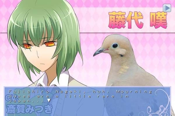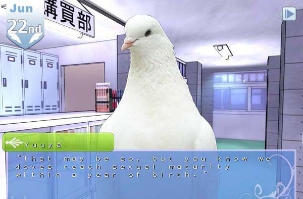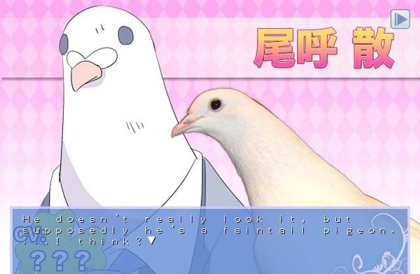 《帅鸽男友》描写主人公升为2年级后的1年中的故事。玩家将扮演“圣鸽国”的精英学校中的唯一人类,一边完成学校课程一边和鸽子谈恋爱。本作品中登场的角色,除了主人公少女外全是鸟类。它们与主人公相互交流,一起在学校学习及运动。这是一个和拟人化动物交流的恋爱游戏。