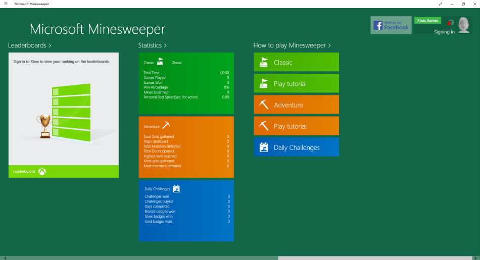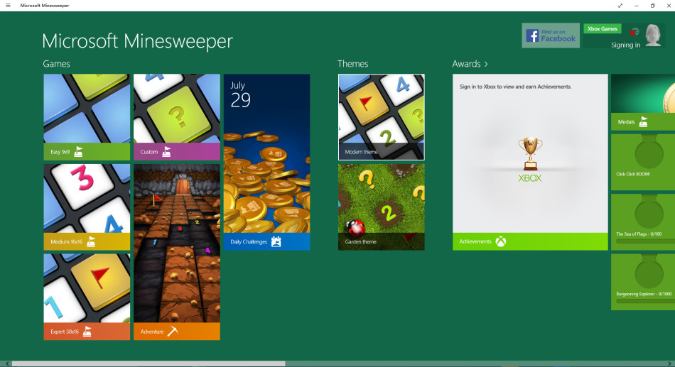 《扫雷》此次依旧没有出现在系统的内置游戏当中,玩家可以选择去系统的商店进行下载,大小为191MB,在Win8时期加入的冒险模式非常有趣,值得一玩。