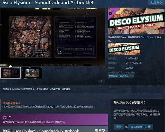 虽然目前Steam商店仅有7个评测,但无一例外都是好评,想必这款DLC的质量不会让人失望。