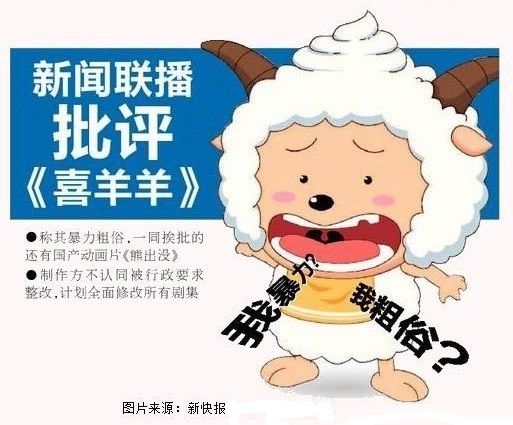 已经连续播出了八年,制作量也已突破千集的《喜羊羊》无疑是此次修改范围最大的动画片。但该公司负责人认为:“我们不存在语言方面的暴力。即使是狼抓羊,最后也是羊取胜。要说暴力的元素,《猫和老鼠》也是打打杀杀,《功夫熊猫》也没有避讳。我们希望能在发展的过程中,更好地去完善电视动漫的制作。”