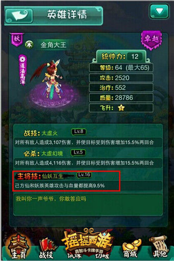 为什么要提高英雄的主将技呢?它的升级费用高,真的划算吗?就像前文所说,主将技的提高关系着整个队伍的实力。进行过主将技训练的玩家不难看出,《摇摇西游》里,许多战技、必杀技的提升都是按照伤害点数来计算的,而细心的玩家也会发现,主将技能的提升,却都是按百分比来计算的。