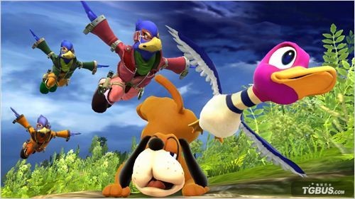 任天堂大乱斗80后玩家童年游戏回忆中必有《打鸭子》这一幕,其中2P可以操控猎犬,想必很多玩家还不知道这个秘密。不过没关系,现在任何人都你能操控它了,还附带一只鸭子。猎鸭犬和鸭子将作为一个角色在《任天堂大乱斗WiiU》中出现,两人还有合体技能,并可以招呼出猎人进行攻击。此外游戏中还增加了《打鸭子》FC版的场景,而在屏幕外射击的玩家自己似乎也可以参与战斗,具体是何种形式目前未知。