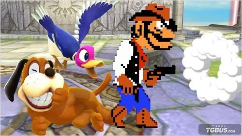 还未发售的《任天堂大乱斗WiiU》颇受玩家期待,在今晨的直面会上,任天堂再次公布了游戏中的新登场角色,他们便是FC平台经典游戏《打鸭子》中的猎鸭犬和鸭子。
