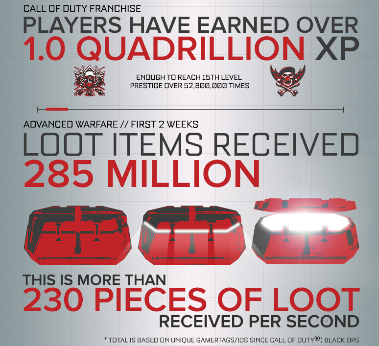 据发行商透露,自2010年起,这个系列的玩家已经超过1.25亿。下面的图片更好更直观地说明了这个情况,其他内容还包括获取经验的描述,以及“高级战争”中获取战利品的信息等等。