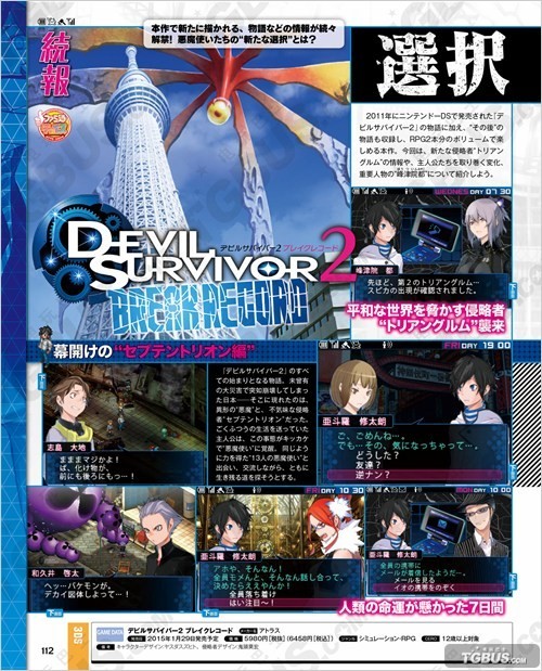 ATLUS推出的3DS游戏《恶魔幸存者2:断码》将于2015年1月29日发售,本作在完整收录NDS版基础上增加了新角色与新剧情,并有全程语音。这次一起来看看侵略者的情报吧。