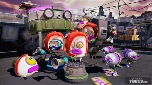 《喷射战士》是任天堂于2014年E3期间公开的一款WiiU平台创意新作,是一款以颜料和涂鸦为主题的多人在线射击对抗游戏。日前任天堂再度通过游戏的官方推特公开了本作的新截图,继续为大家展示本作中登场的杂兵角色。可以看到,章鱼军团(タコ軍団)中的战斗员有很多种不同的类型,其装备也各不相同,玩家们在体验单人模式的时候要小心的对付他们才行。