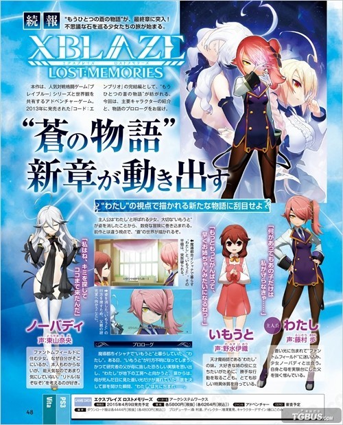 ArcSystemWorks预定于2015年4月9日发售的PS3/PSV双平台AVG新作《X苍炎 失落记忆》时隔许久终于公开了新的情报。在发售日确定的同时,本次还介绍了两名登场角色以及故事剧情的相关情报。