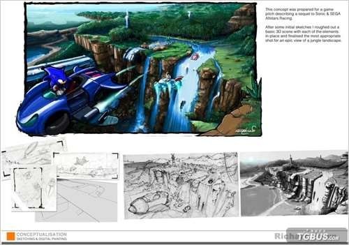 日前Sonic Stadium公开了《索尼克与世嘉全明星赛车》和《索尼克与世嘉全明星赛车:变形》这两部作品的许多未公开艺术图,这些艺术图包含了两款游戏开发初期的一些设计内容,下面就请大家一起来欣赏一下。
