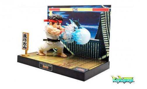从红白机时代开始,《街头霸王》系列也陪伴我们走过了许多年。如果你至今仍对它感情深厚,Play-Asia推出的这一套《街头霸王》模型怎能错过。这模型可不只是一个小人而已,它展示了玩家们都相当熟悉的场景——隆正在“发波”。背景非常经典,再加上旁边“风林火山”四字和顶上的血条,老玩家一定都泪流满面了。