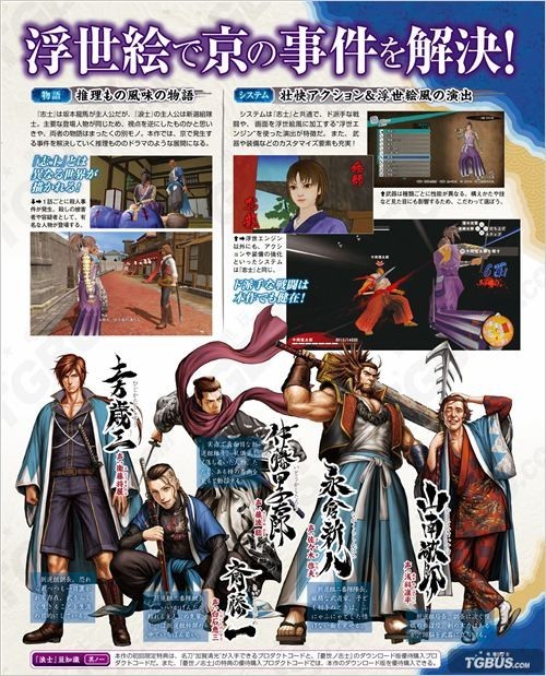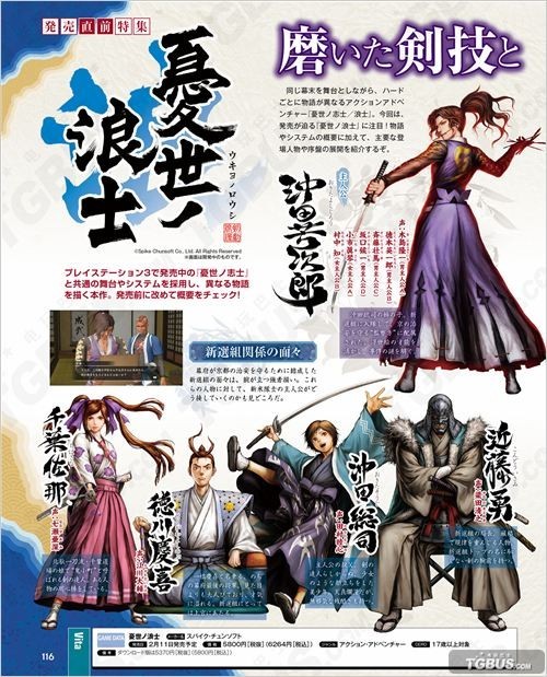 Spike Chunsoft推出的和风动作AVG游戏PSV平台《忧世之浪士》将于2015年2月11日发售,本作与PS3平台发售中的《忧世之志士》有着共通的舞台及系统,但讲述了不同的物语。本周FAMI通杂志售前特集,除了综合介绍本作系统剧情外,还公开了几位新角色。