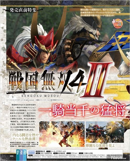 KOEI TECMO预定于2015年2月11日发售日版的PS4/PS3/PSV平台新作《战国无双4-2》,本周FAMI通杂志游戏售前特集,综合介绍了目前已公开的情报。另外本作的繁体中文版也确定推出,感兴趣的玩家不要错过。