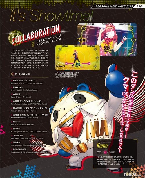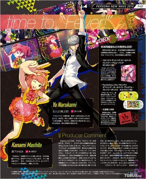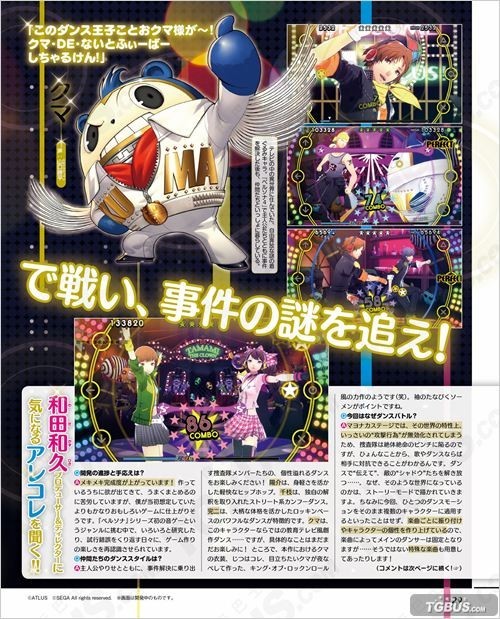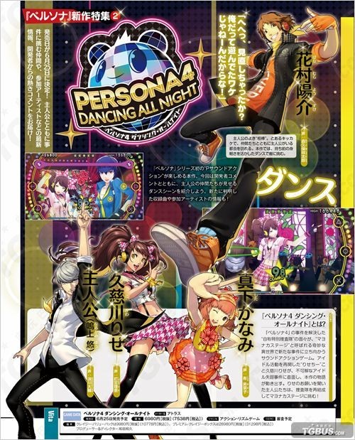 ATLUS预定于6月25日发售的PSV音乐节奏游戏《女神异闻录4:舞夜狂欢》在上周的活动中正式公布了发售日期、各种特典以及最新的宣传视频(点此了解详情)。而本周Fami通与电击杂志均大篇幅报道本作的内容,下面就一起来看看吧: