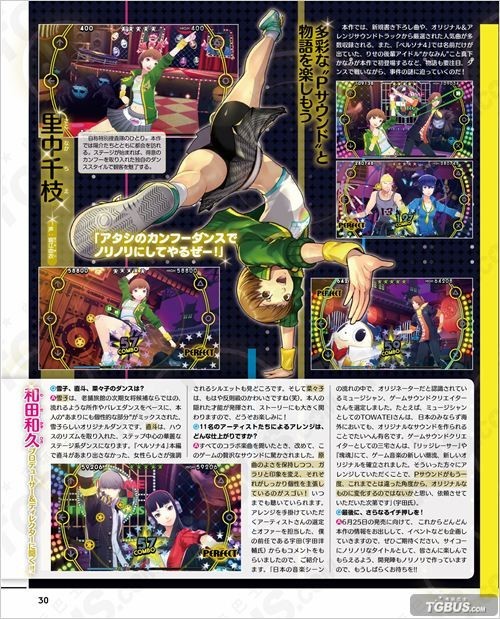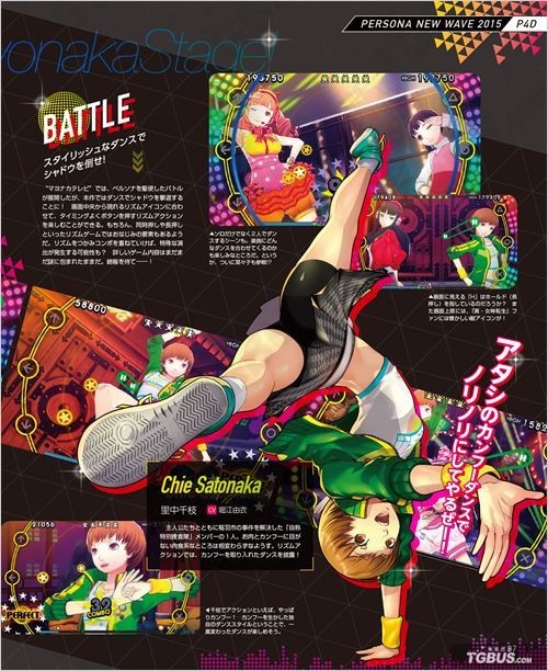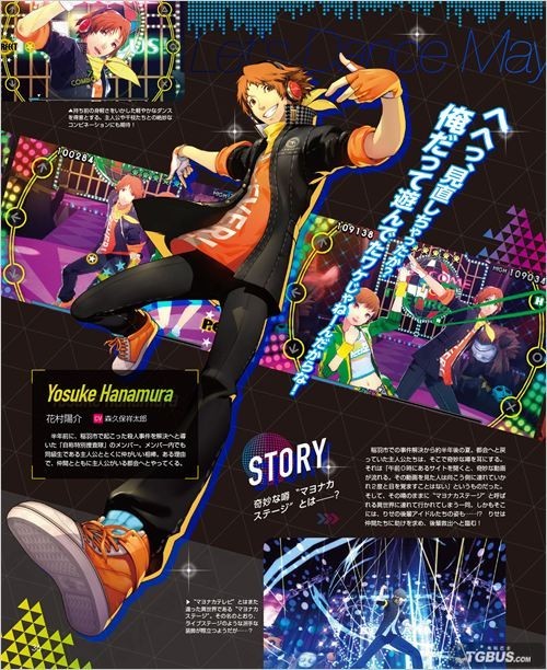 女神异闻录4:舞夜狂欢在Fami通这边同样公开了大量游戏画面,此外还刊载了本作制作人兼导演和田和久的访谈。在访谈中他谈到,在“午夜舞台”的世界里一切攻击手段都无效,所以只能通过歌曲与舞蹈来击退Shadow,每名角色都会有符合其性格特征的舞蹈风格,其中直斗在本作中会更加体现其女性的一面,至于菜菜子则是可爱到爆。
