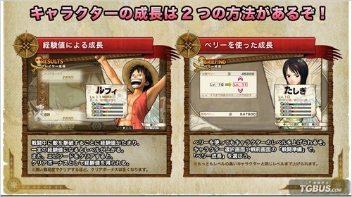 使用贝利(金钱)成长:使用贝利来提升角色等级,可以在角色选择画面与战前画面的“战斗准备”中选择“贝利成长”。