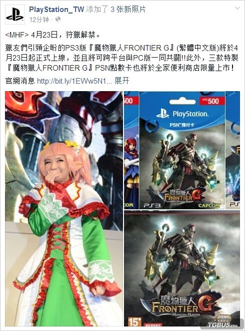 SCET官方FACEBOOK公布,PS3版《怪物猎人:边境G》繁体中文版将于4月23日起正式上线,并将可跨平台与PC版一同共斗,此外三款特制的《怪物猎人:边境G》的PSN点数卡也限量上市。而为庆祝PS3版上线,官方还将推出多重活动。