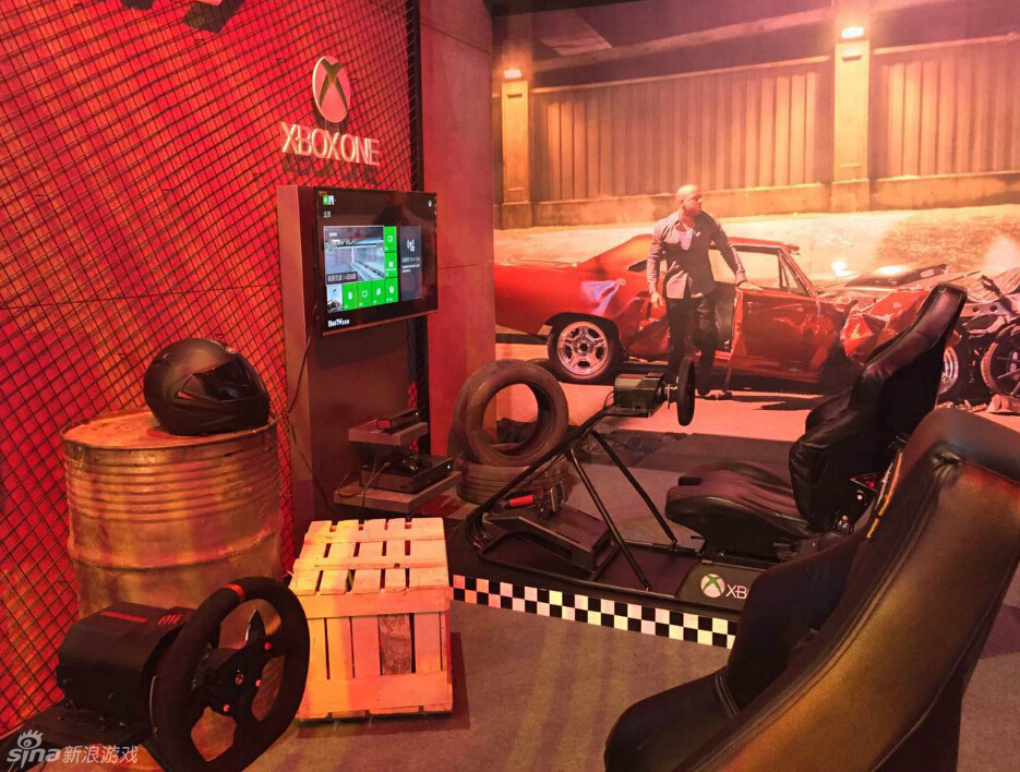 速度与激情7北京首映活动 远处能看到XboxOne的标志此外,微软XboxOne这次和电影进行了合作,不但为《极限竞速:地平线2》推出免费的《速度与激情7》车辆扩展包,在北京的首映现场也开辟了XboxOne的试玩区,现场提供《极限竞速5》国行版本的试玩。Xbox中国区总裁谢恩伟也到场参加。