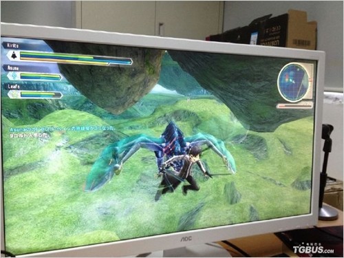 刀剑神域 失落之歌之后就到了可以自由行动的游戏实机画面,和刚刚的精美CG动画比起来,实机画面有那么一点寒酸,地面的贴图很粗糙,远处的风景还好,如果有敌人或者队友的话那么这个单位体型比例都会变得比较怪异……在大地图之中,不管是地面还是天空,都能随机遇到敌人。