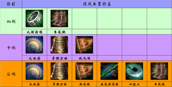 隐风出装推荐 隐风战场定位为远程内功输出武者,初期出门装为九阳指环、夺气靴;中期核心装为天香扇、罩体金钟、凤鸣旗;后期六神装为天香扇、罩体金钟、凤鸣旗、碧海萧(益气)、伽蓝玉、夺气靴。