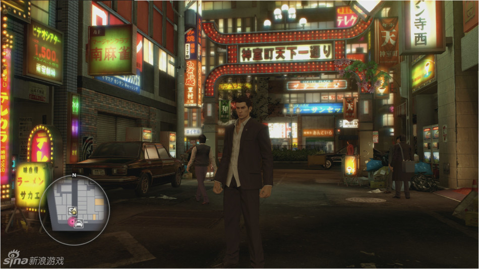 高度还原时代风貌的街道场景作为高自由度的日式游戏代表之一,《如龙零》的场景并不像GTA系列一样做成完全开放的方式,玩家被限制在一个相对宽阔的区域中活动探索。虽然在自由度方面做出了妥协,不过这也使游戏可以对相对封闭的街道场景进行更细致的刻画。无论是路人的穿着,街边的摆设招牌还是路旁的停靠的汽车,所有的元素融合在一起营造出完美的时代感,令人感觉如同置身于这个旧时挥金如土的繁华年代。