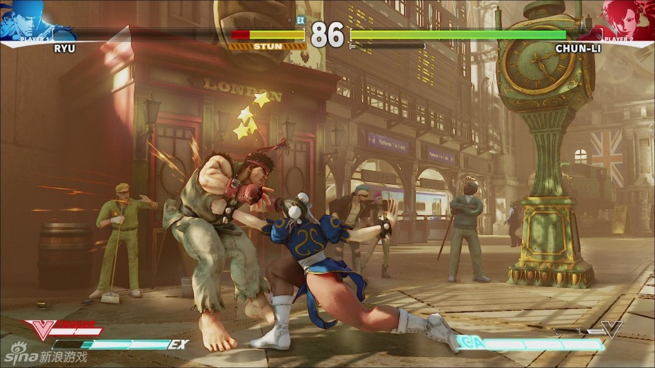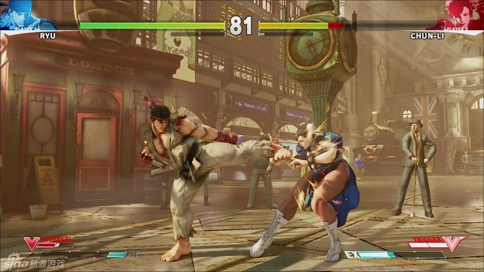 《街头霸王5》新画面巧合的是,国外网站Dual Pixels刚刚分享了一批《街头霸王5》的最新截图,正好向我们展示了伦敦场景,背景中我们可以看到打扮怪异的Rocker,拿着球棍的绅士还有各种搞怪的皇家卫兵。同时,截图也向我们展示了春丽,隆,将军和纳什的战斗画面,最后还有四位角色的高分辨率艺术画,别忘了收藏!