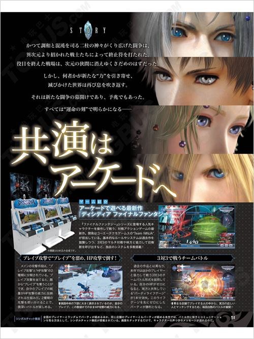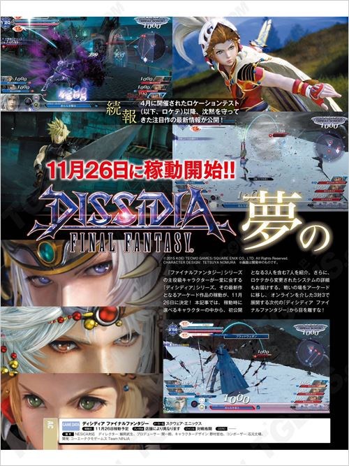 SQUARE ENIX推出的街机版《最终幻想:纷争》将于11月26日在日本正式运营,本周FAMI通杂志公开了运营开始时的7位可选角色及系统详情介绍。本作为“最终幻想”首个街机游戏,“最终幻想 纷争”系列最新作,拥有高画质,采用3对3团队战。本作之后很有可能登陆PS4平台。