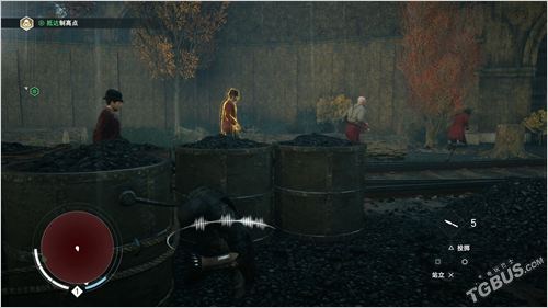 剧情后信仰之跃跳下,来到左边能看到吊桶,利用飞刀可以正好砸死下面2个倒霉的家伙。