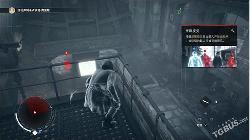 进入建筑后可以继续潜心,不断向绿色目标点移动,这里可以按下L3使用鹰眼确认敌人位置。