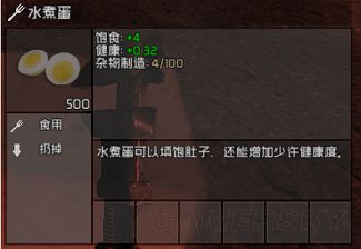 看看它的指标,健康+1且无副作用,连味道都不会散发,再看看制作它只需要锅+烤架+2蛋1肉,综合来看,它是首选食物。