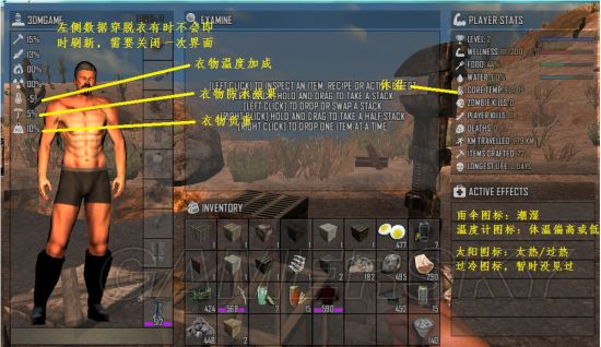 1、在火把、火炉边都会升温(左下角会有个火焰标志),身体湿了以后会降温。