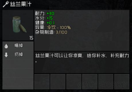 你可能以为它的加健康指标还凑活,但是饱食度加得少,而且有个副作用,制作时会消耗一瓶水+瓶子,还不降低口渴,为啥能在高性价比物品上排名。恰恰因为它加得饱食度低,并且极容易获得,所以可以用它来刷生命上限。其实如果不是玉米前期不好搞,我会推荐玉米饼的。