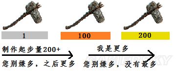 轻松将工具制作品质升到黄色(200+品质),大约需要制作450+个石斧;制作武器升级到橙色(100+品质),大约需要制作250+木棒。