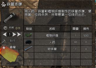 这东西有点逆天,基本等于手雷,制作主要耗费10火药,这版本火药在如果算入矿物的话,算是最好搞的,特别是有很多露天煤矿、硝酸钾,前期不要放过,能轻松采集。