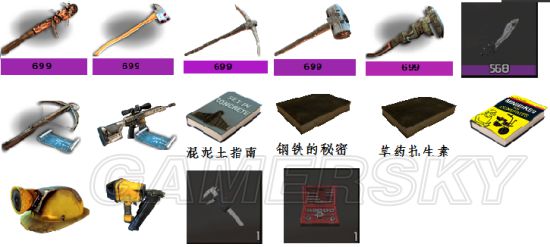 好斧头、好镐头、修理工具、量具、模具、矿工帽、钉枪、十字弓制作书、狙击枪制作书、摩托车制作书、混泥土制作书、钢铁书、药草抗生素制作书(传说中的),好的近战武器(军刀、锤子或者狼牙棒)、啤酒。其他东西看缘分。