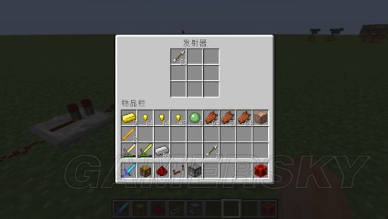 然后就是这个东西的用法了,我们首先可以准备一些材料:陷阱箱,这个是必须的,然后是一些红石,还有必须的中继器。以及用于攻击的发射器。准备好了这些材料,我们把这些东西按照下图摆放: