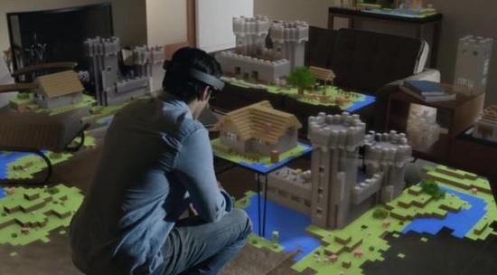 展示者带上了Hololens,在《我的世界》里和现实进行了超强互动,在特殊的摄像机展示下,展示者把《我的世界》带入了我们的世界。你可以缩小镜头,放大镜头,任意移动……虽然消费者版看上去还有很远的距离,但是微软为我们展示了未来游戏的无限可能,也为我们展示了AR版《我的世界》的无限可能。